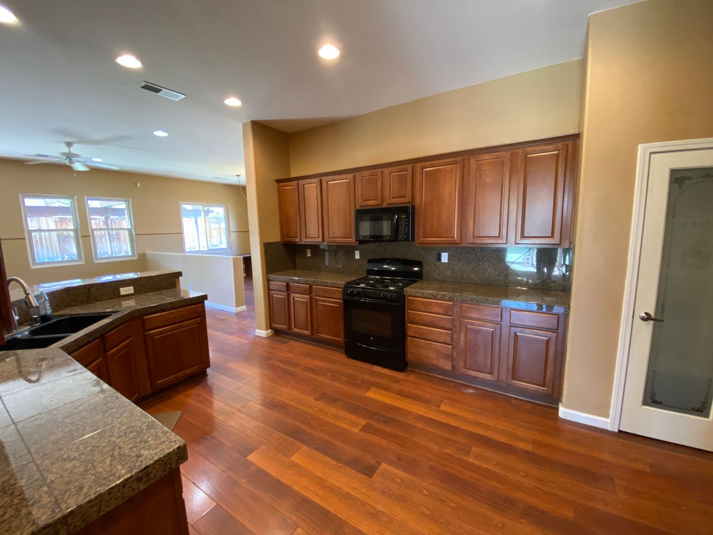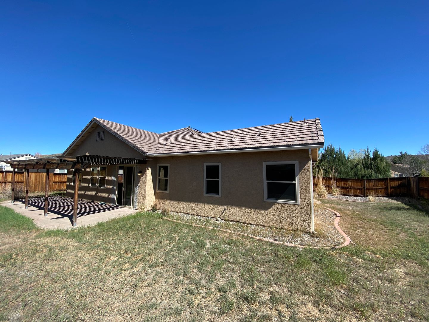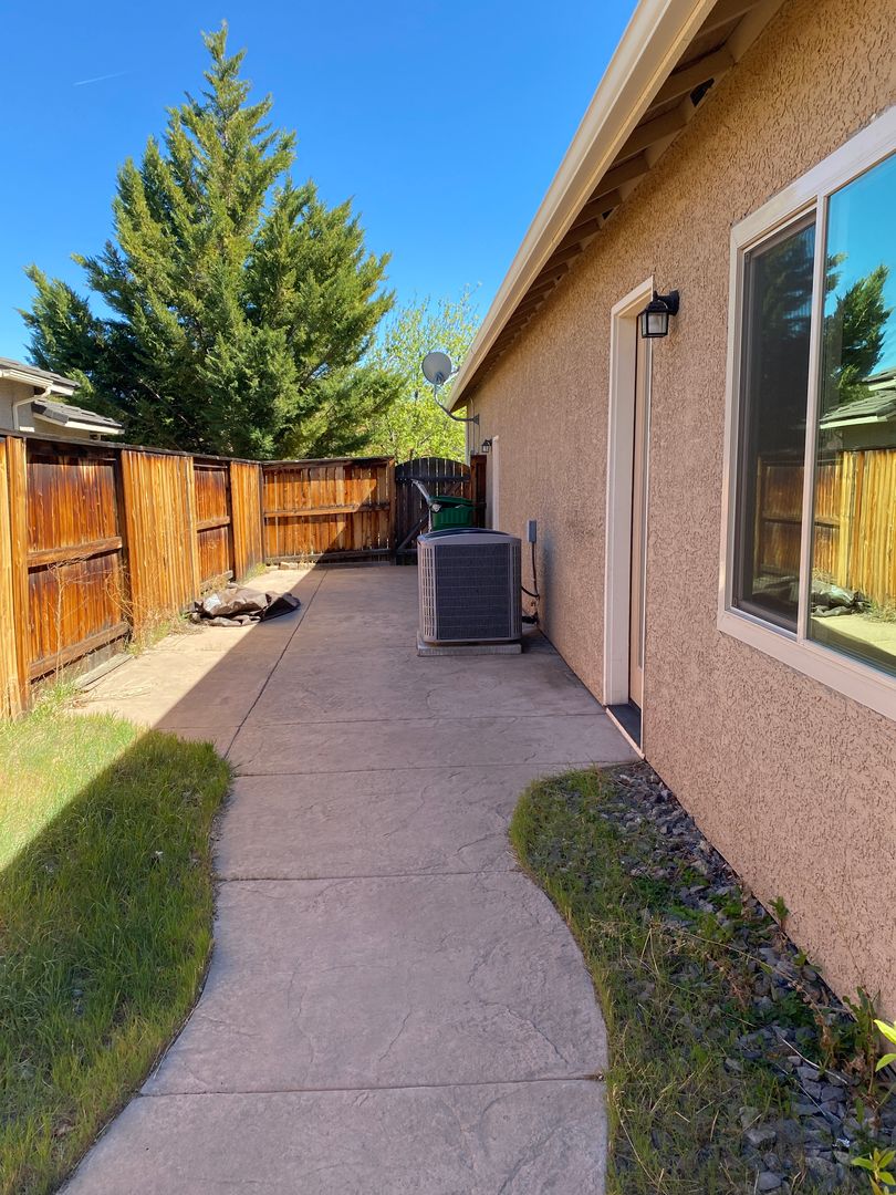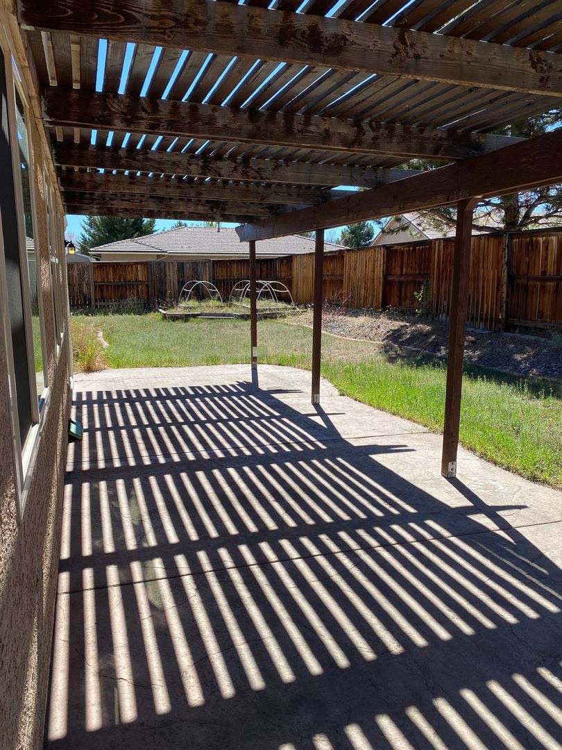 Must see this four-bedroom single-level home with open floor plan. Located in the sought-after, gated Vineyards Village community. Solid countertops, hardwood and carpet throughout, lots of windows, large rooms. Ovesized lot with huge stamped concrete covered and uncovered rear and side patios and courtyard. Great for entertaining. Three-car tandem garage. Conveniently located to shopping, restaurants, gyms and the Sparks Galleria. No smoking. No pets. Renter's insurance required.